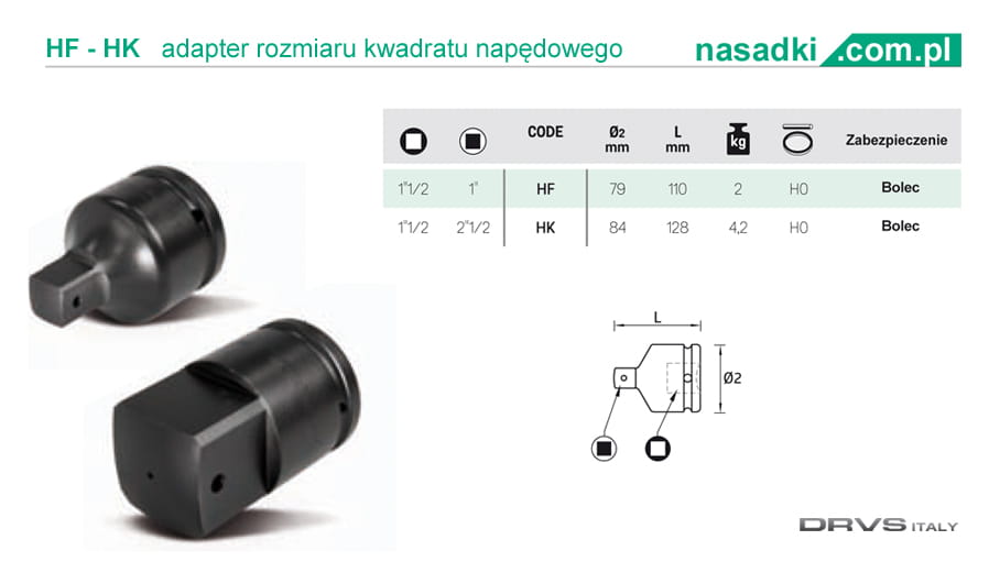 Adapter udarowy rozmiaru kwadratu napędowego - idealny do pracy wzmacniaczem momentu obrotowego lub kluczem zmechanizowanym - hydraulicznym, pneumatycznym czy zakrętarką elektryczną.Możliwość zabezpieczenia sprzęgu przetyczką z pierścieniem (o-ringiem).