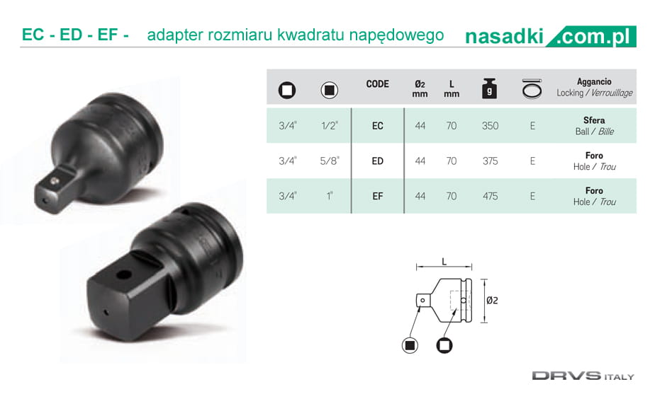 Adapter udarowy rozmiaru kwadratu napędowego - idealny do pracy wzmacniaczem momentu obrotowego lub kluczem zmechanizowanym - hydraulicznym, pneumatycznym czy zakrętarką elektryczną.Możliwość zabezpieczenia sprzęgu przetyczką z pierścieniem (o-ringiem).