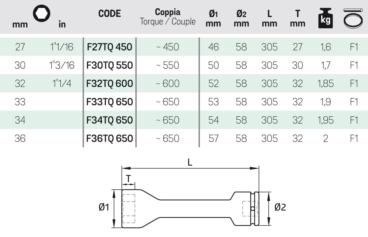 Ogranicznik momentu pozwala dokręcić śrubę z dokładnie wcześniej ustalonym momentem. Max moment: 600 Nm. Rozmiar śruby: 32 mm. Długość całkowita: 305 mm.
