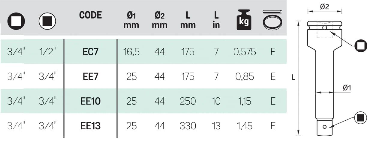 Nasadka 3/4" przedłużająca kwadrat wiodący. Długość całkowita 330 mm.
